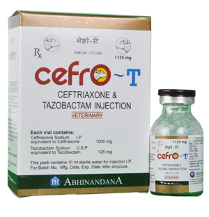 Ceftriaxone is bactericidal in action resulting from inhibition of cell wall synthesis. Ceftriaxone has high degree of stability in the presence of beta lactamase, both pencillinases and cephalosporinases of gram negative and positive bacteria. Tazobactam Sodium is a penicillanic acid sulphone and a beta-lactamase inhibitor which irreversibly inhibits beta lactamase produced by clinically important gram –ve, gram +ve aerobic or anaerobic bacteria. Tazobactam penetrates into many types of body tissues and fluids and in combination with ceftriaxone, it broadens the spectrum of ceftriaxone to include many beta lactamase producing organism including those which are resistant to ceftriaxone alone. Cefro-T a combination of Ceftriaxone and tazobactam demonstrates a synergistic activity in variety of gram positive, gram negative, aerobic and anaerobic bacteria.