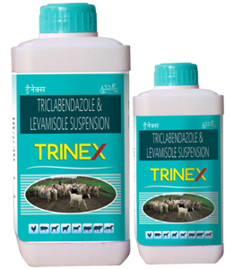 TRINEX is indicated for the treatment and control of mature and immature gastrointestinal nematodes (Ostertagia, Haemonchus, Trichostrongyulus, Nematodirus, Bunostomum, Gaigeria, Chabertia, Oes ophagostomum), lungworma (Dictyocaulus) and all 3 stages of liver fluke (Fasciola) infections in cattle and sheep.
